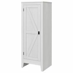 The A Design Studio Glen Orchard Storage Cabinet is a stylish way to stay on top of your organization. The rustic barn style design and sleek tapered feet gives the look of an old weathered cabinet but the sturdy laminated particleboard and MDF make this Cabinet the perfect piece to house your home office supplies, extra linens, seasonal clothing and more!