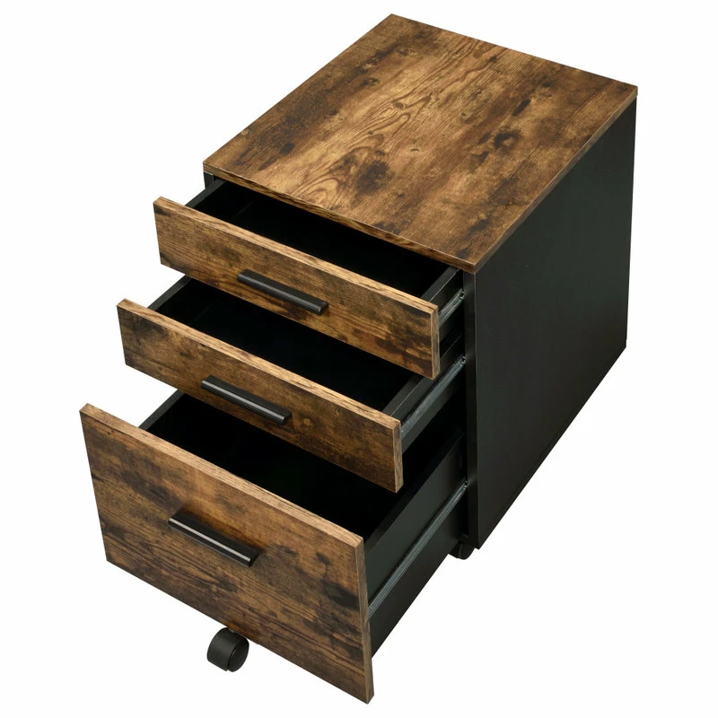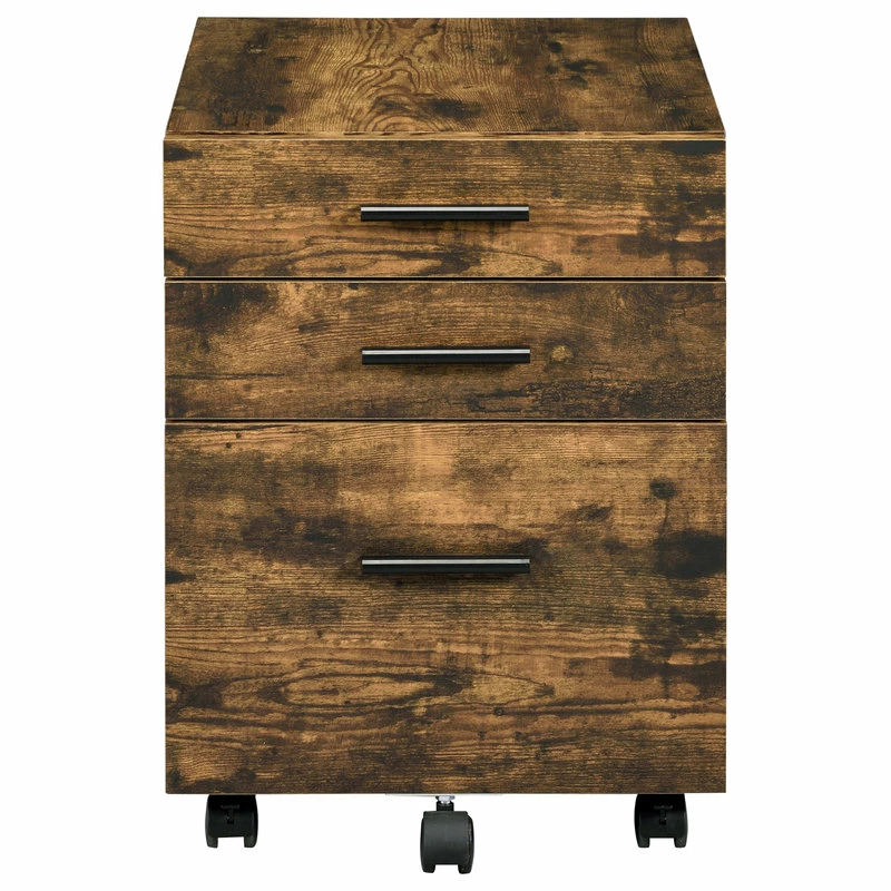 Add some industrial flair to your home office with this Abner file cabinet. Featuring three drawers and the caster wheels, functionality and mobility are both included. With the weathered oak finish, it is perfect to match any ensemble.