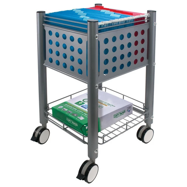 Store your important files in the Vertiflex Mobile Sidekick File Cart. This cart holds letter-sized hanging file folders and transports them where needed. The bottom shelf holds paper and supplies for easy access. Made of durable steel and wire construction, this mobile file cart has four twin-wheel casters, two of which are locking. The cart is easy to assemble and has a neutral matte gray finish which coordinates with any decor.
