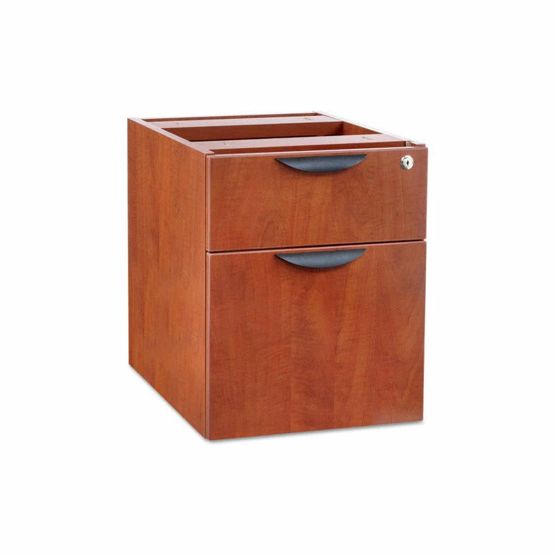 Not freestanding, attaches under worksurface. Sturdy four-sided drawer construction with separate front panel. Full-extension ball bearing slides on file drawer for easy access. Drawers lock for securing contents. Durable 3 mm edge banding protect against bumps and dings. Two fold-away safety keys (included) for a slimmer profile.