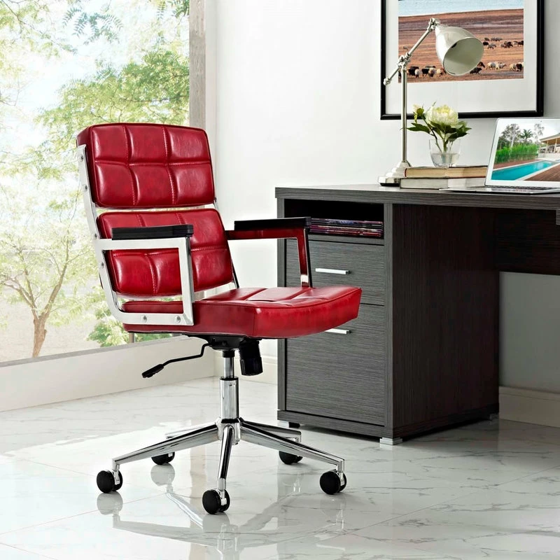 Make a striking statement with the Highack Office Chair. Boldly designed with an impressive tiled design and sharp look, boats comfortable dense foam padding and a stunning chrome steel frame and base. Featuring five dual wheel casters for enhanced stability and easy mobility over hardwood or carpeted surfaces, is an exquisite example of what a modern office chair should be. Complete with tilt tension control and one-touch height adjustment, is perfect for the progressive, inspired office setting.