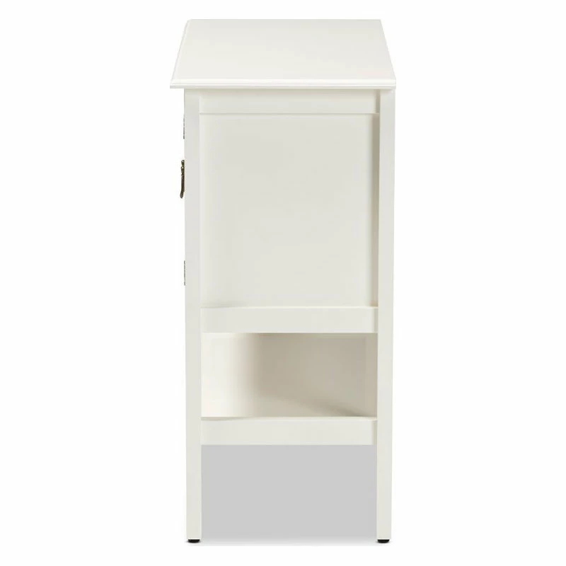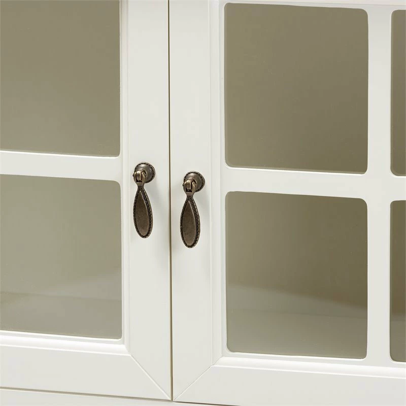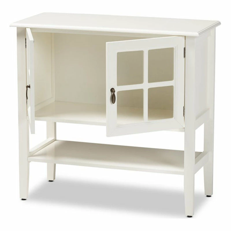 Keep your kitchen organized and in style with the Chauncey kitchen storage cabinet. Two glass doors provide easy access to one shelf that provides secure storage for all your favorite plates and glassware. Each door is fitted with an engraved bronze metal pull, lending a touch of elegance. A lower shelf provides additional storage space. Constructed from wood, the Chauncy features a white finish that illuminates any kitchen. The Chauncey kitchen storage cabinet is made in China and requires assembly.