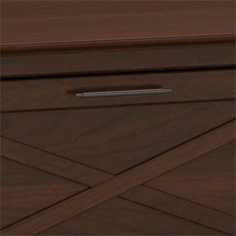 A natural fit for many homes, the Bush Furniture Key West 2 Drawer Lateral File Cabinet provides a casual storage component that works subtly in almost any room. A unique X pattern accent on the drawer panels creates a relaxed style supported by a sturdy and attractive post leg design. This collection offers the look of natural reclaimed wood with an authentic Bing Cherry finish with Aged Bronze hardware accents. Two file drawers accommodate letter and legal size files and are built with full extension ball bearing slides for smooth opening and closing. This filing cabinet can be placed anywhere in the room and matches the height of any Key West Desk to create a spacious feeling and extended workspace. Key West offers a harmonious selection of furniture that makes putting a complete room ensemble together a breeze. Construction meets ANSI/SOHO standards for safety and performance and is backed by the Bush Furniture 1 Year Manufacturer’s Warranty. See the full collection for coordinating items available.