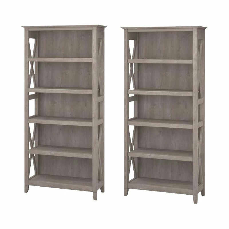 Brand new 🌟 Bush Business Furniture Bush Furniture (Set Of 2) 5 Shelf Bookcase In Washed Gray ⌛