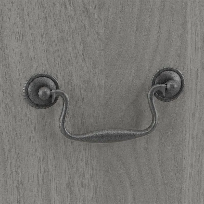 - Available in Linen White Oak or Modern Gray with Distressed Iron hardware and Harvest Cherry with Gold-finished Brass hardware