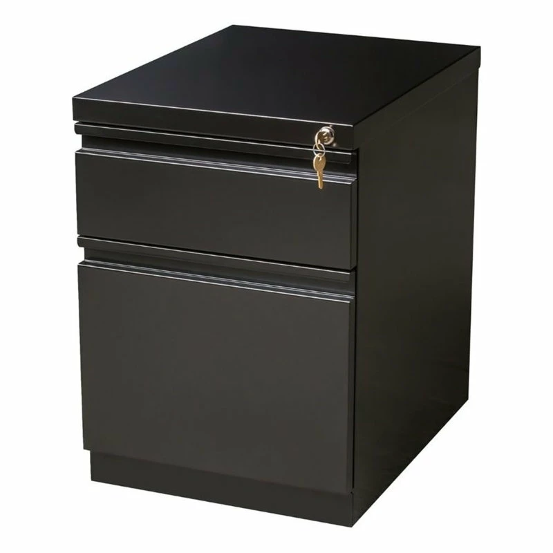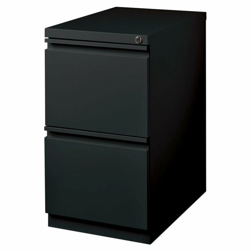 - Hirsh Industries 2 Drawer Mobile File Cabinet File in BlackHirsh commercial grade 20″ deep mobile pedestal files are designed to support the demands of today’s office. Full extension drawers and full-width drawer pulls create a style that coordinates with Hirsh HL10000 Series Pedestal Desks and HL8000 Lateral File Cabinets. Available in 3-drawer Box/Box/File and 2-drawer File/File combinations to help keep your contents organized. Precision ball-bearing suspension allows for a smooth and quiet drawer operation. File drawers accommodate letter-size hanging files. Hidden casters yield a clean, modern line for your home or work office environment. Core-removable lock to keep your drawers secure. Counterweight comes standard to prevent the unit from tipping. Available in putty, black, light gray, charcoal, medium tone, blue, white and platinum. Limited Lifetime Warranty. Greenguard Gold. TAA Compliant. Meets or exceeds ANSI/BIFMA standards.