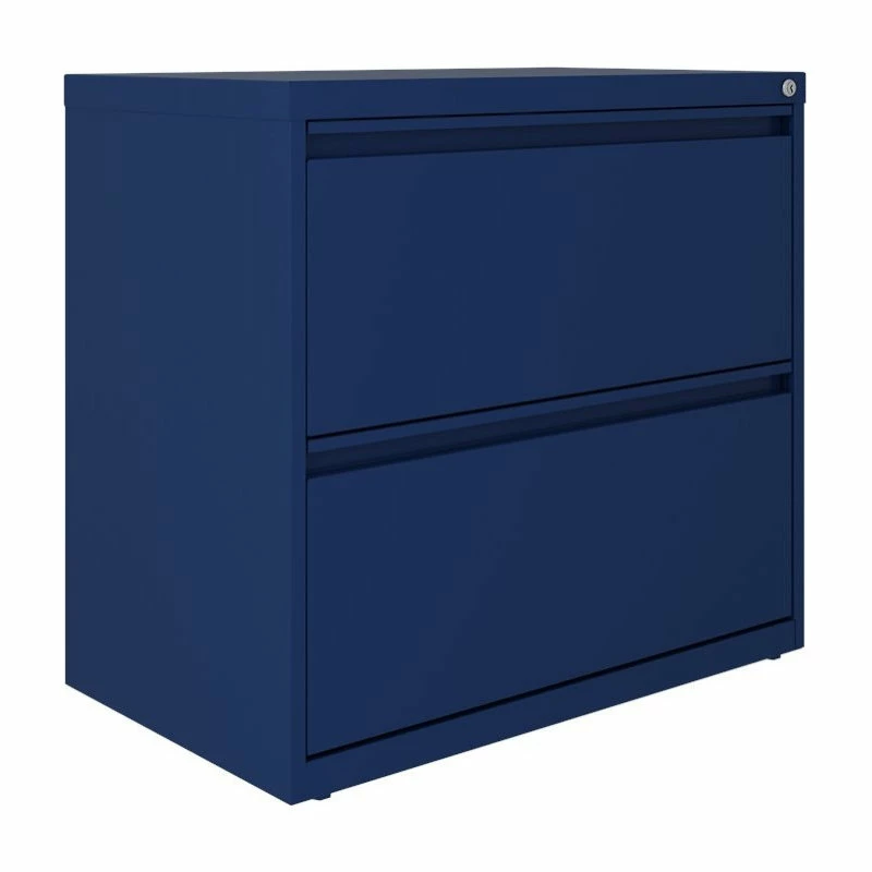 - Hirsh 30 inch W 2 Drawer Metal Lateral 101 File Cabinet NavyThe 2 drawer metal 30″ lateral in navy with full width J-pull handle is a durable, economical storage solution and is great for small spaces. The fully assembled steel construction with non-porous surface is easy to clean and disinfect.