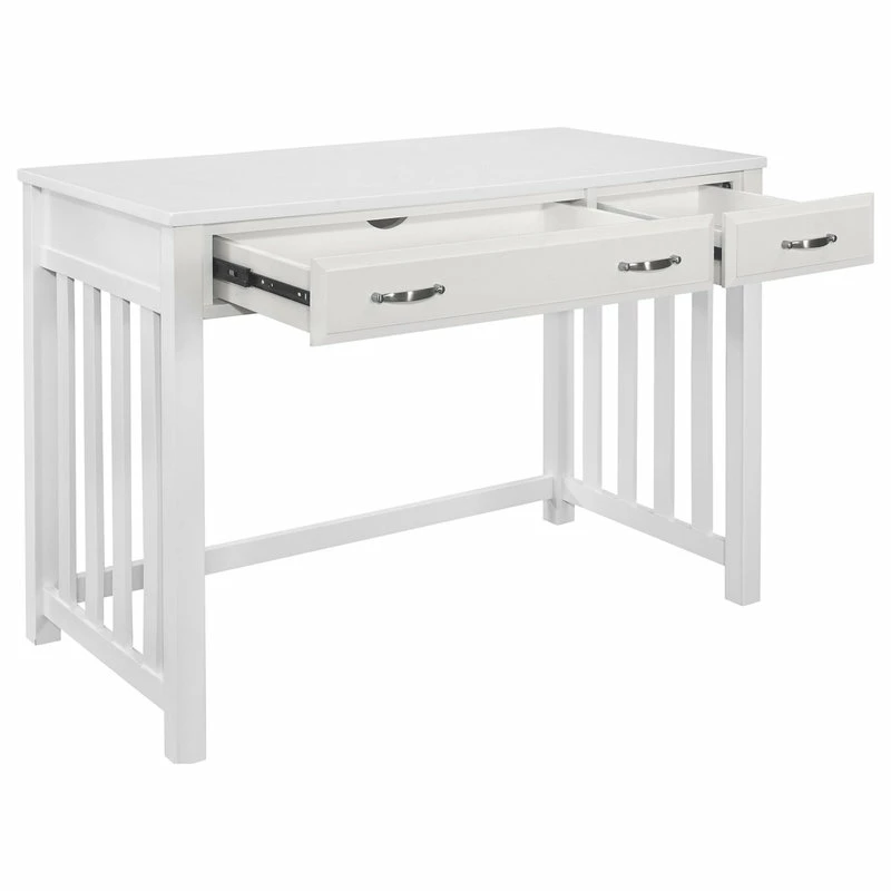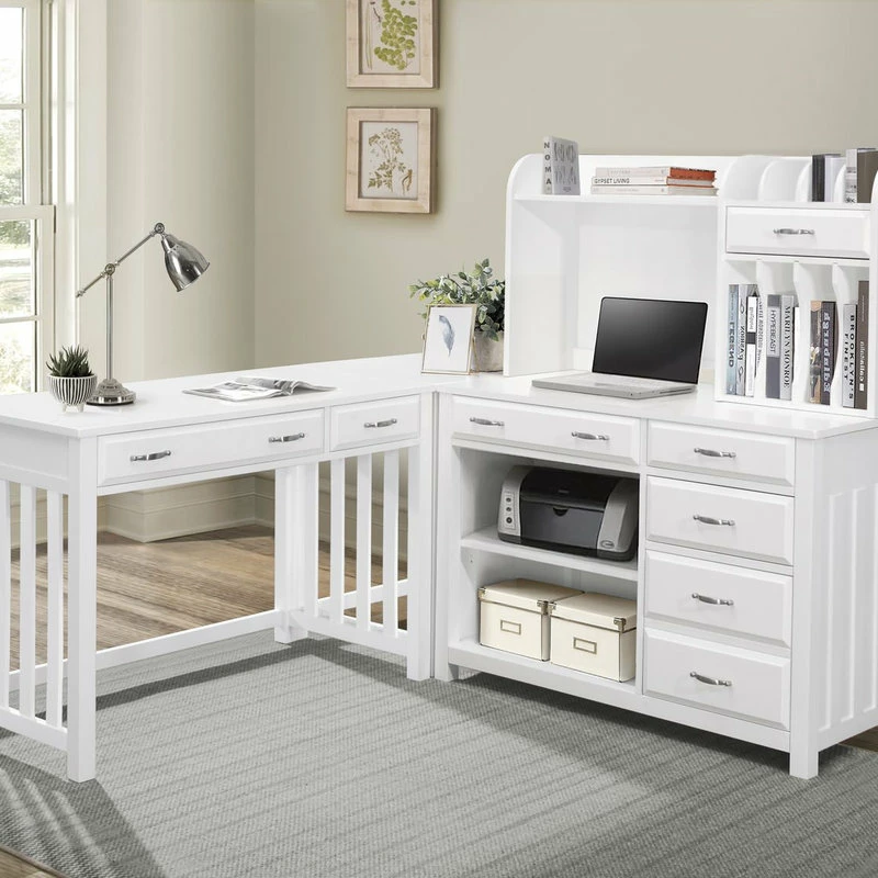 Completing your workday activities in an efficient manner within an environment that allows for you to reach your goals, the addition of the Hilles Collection will provide a platform that sets you up for success. The white finish, over mindy veneer, is paired with satin nickel bar pull hardware ensuring the look of the collection is a perfect match for your decorative preferences. The desk features a keyboard drawer and small drawer for ease of access to your desktop accessories.