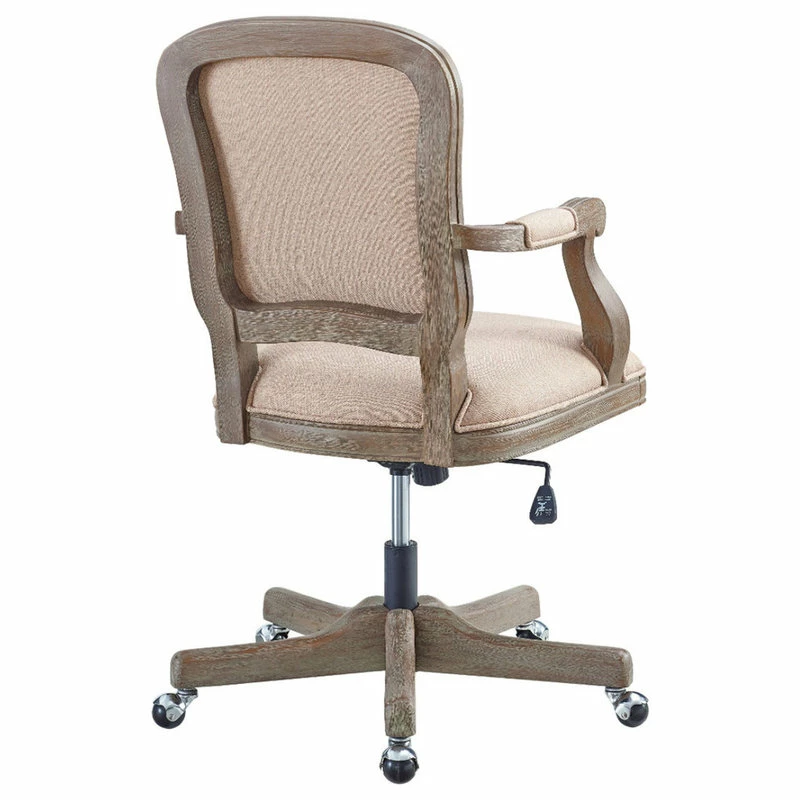 The Maybell Office Chair speaks French Country style. From its rustic features and vintage design this chair will surely add a touch of charm to any home office or work space. Completed with adjustable height, padded seating and rollin wheels. This piece will make for a more comfortable yet stylish work space.