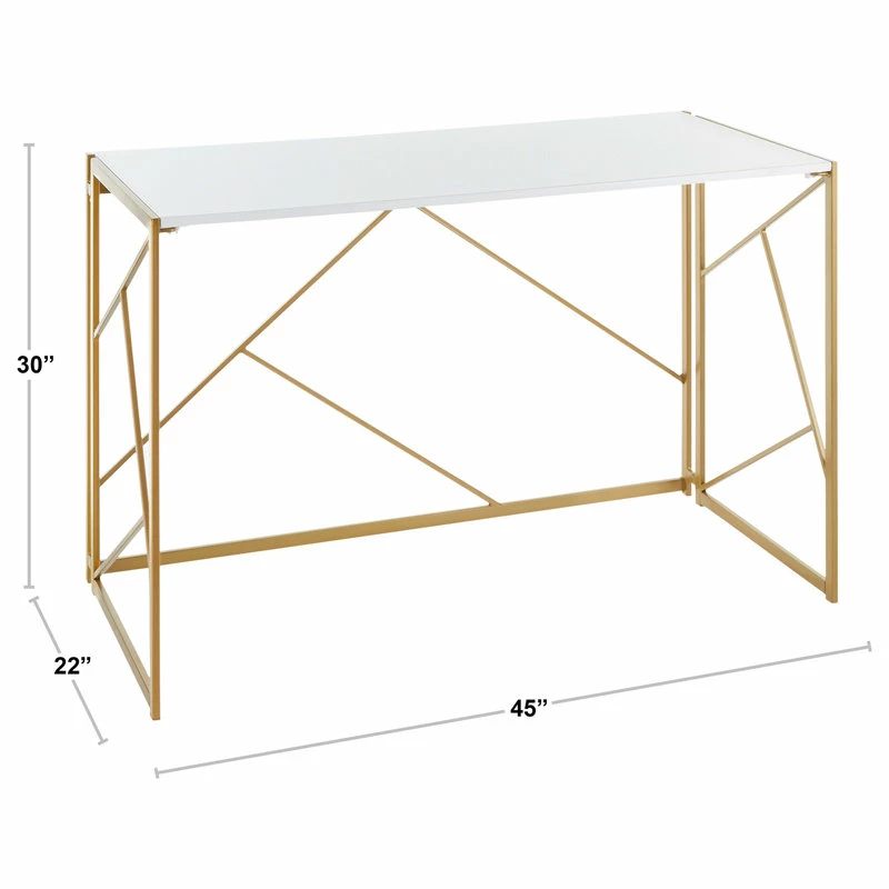 With its pleasant design and modern lines, the Folia Desk by LumiSource is a unique statement in any space. Featuring a gold metal frame and white wood top, the Folia Desk is sure to add a touch of glamour to your surroundings.
