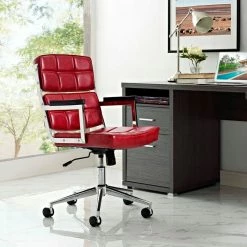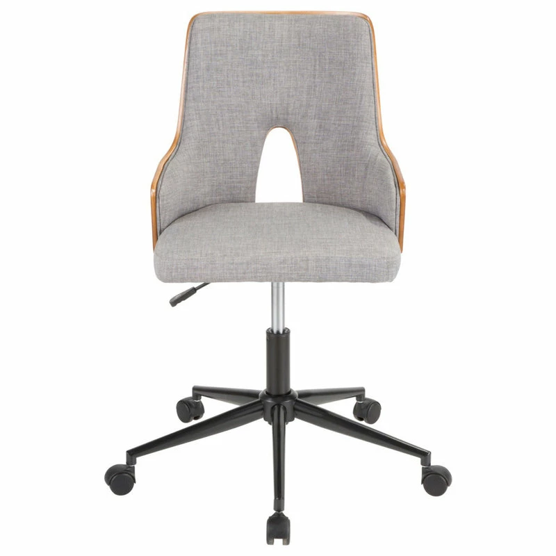 The simplistic design of the Stella Office Chair is perfect for any work space. This chair showcases a sleek bent wood back, padded upholstered seat and backrest, and an open cut out design to emphasize that airy feel. Available in several colors, choose the look that’s right for you.