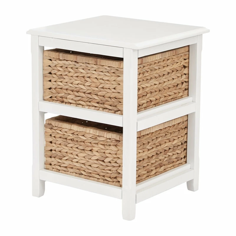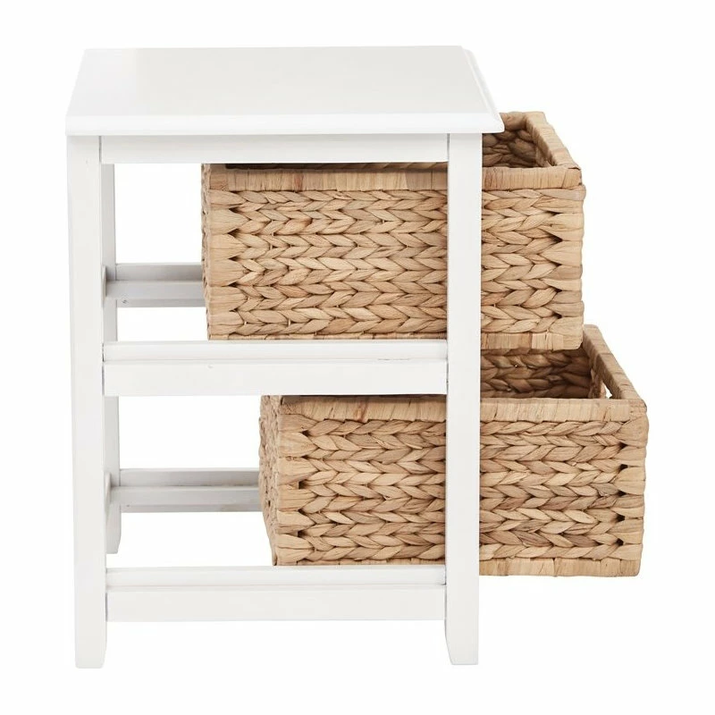 Seabrook Two-Tier Storage Unit Engineered Wood White Finish and Natural Baskets