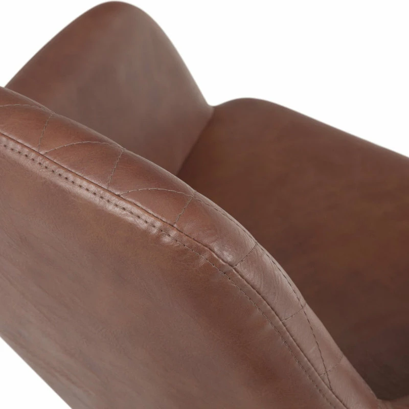- Upholstered with a durable Distressed Cognac Brown Faux Leather