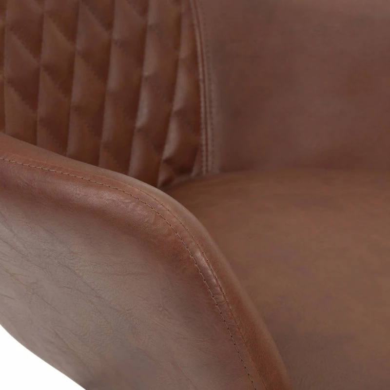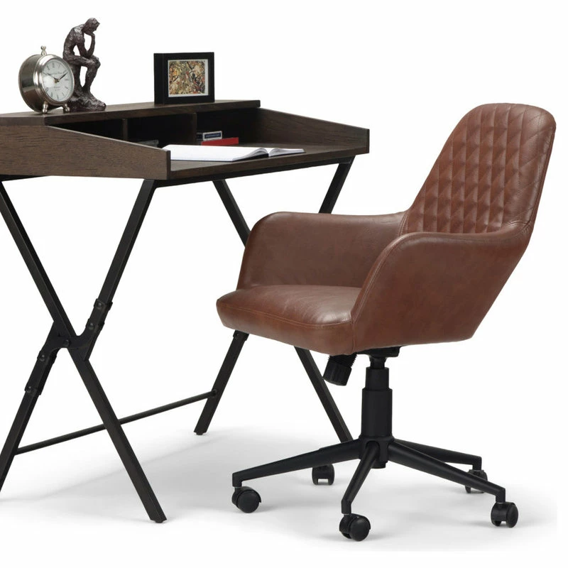 Goodwin Swivel Adjustable Executive Computer Office Chair in Distressed CognacThe Goodwin Swivel Office Chair has the look of an accent chair and the function of an office chair. The base of the chair has a matte black finish and sits atop five castor wheels, for easy mobility. The gas-lift adjust lever allows you to adjust the height for optimal comfort. The diamond tufted back and wide padded seat and arms make this furniture item an attractive addition to your work space.