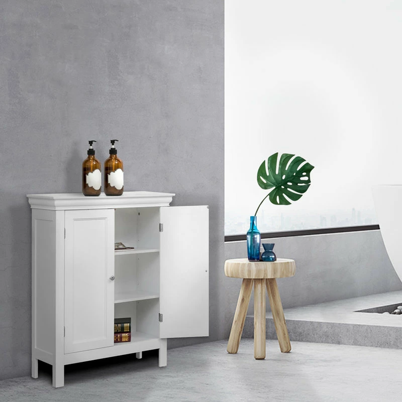- Declutter counters and hide accessories and necessities in the simple and classic floor cabinet. Hardware included; tools not included