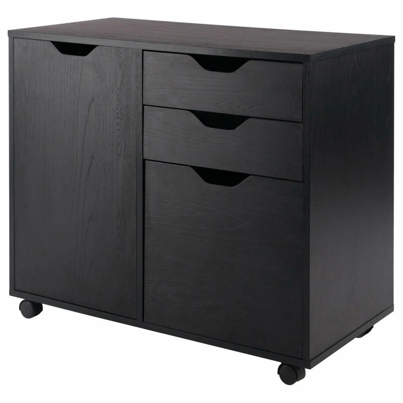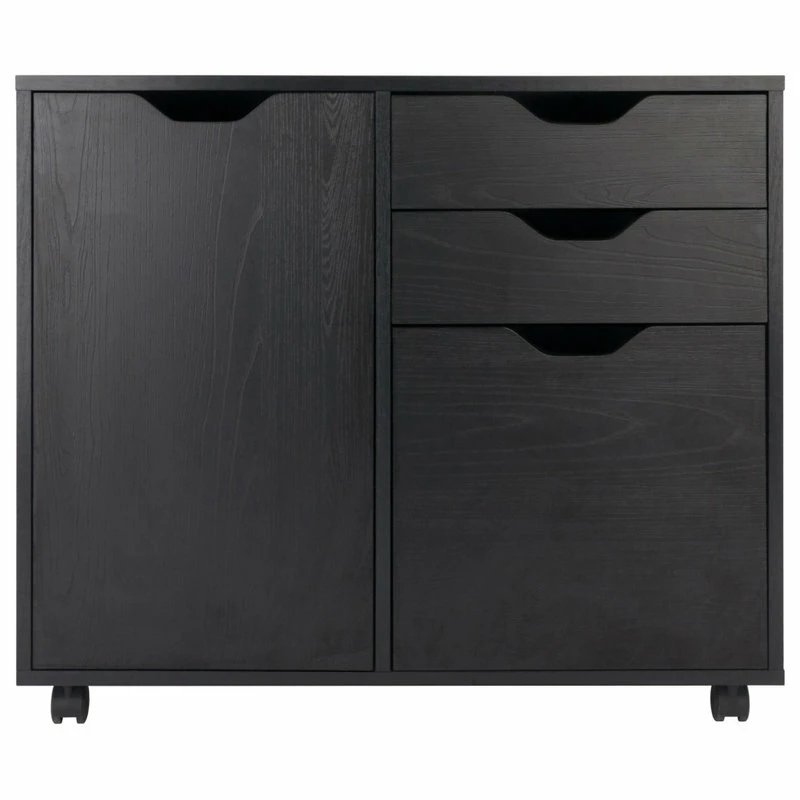 The Winsome Wood Halifax 2-Section Mobile Filing Cabinet can transform a home office or any room where you need easy-access storage. Use the lower of its three gliding drawers as a filing cabinet with removable metal rods to hang letter-sized files, or remove the rods and have an extra-deep drawer for bulky storage. The cabinet has an adjustable (or removable) shelf that adjusts to 3 different height positions, ideal for keeping your home office files, printer paper, charging cables, and office accessories neat and organized. And with its clean, simple design, and easy-to-use cut-out handles, the Halifax will work just as well in a walk-in closet to expand space for clothing, shoes, handbags and accessories. Or use it in a child’s bedroom to reduce the clutter of toys and sports gear. The flexibility of the filing drawer configuration and adjustable/removable shelf make it adaptable to a variety of storage needs.Overall dimensions: 26.3″H x 30.7″W x 15.9″D, Inside drawer dimensions (2x): 13.2″W x 11.7″D x 2.5″H, – static weight capacity per drawer is 12 lbs., Inside file drawer dimensions: 13.2″W x 11.7″D x 7.8″ – 11.8″H, – static weight capacity for file drawer is 25 lbs., – distance between metal rods is 12.2″W, – distance from metal rods to bottom of drawer is 10.4″H, Cabinet inside dimensions (without shelf): 13.7″W x 14.7″D x 22.8″H, – shelf dimensions: 13.6″W x 14.3″D, Assembly required, Ships in 1 box,
